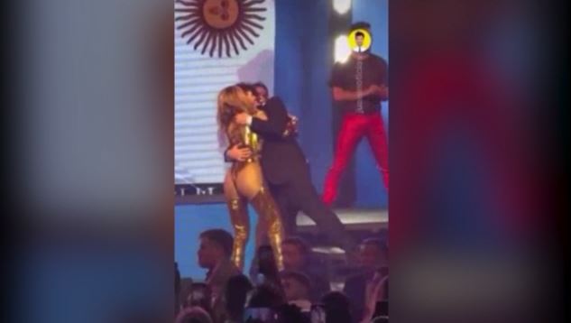Οι θεατές ξέσπασαν σε χειροκροτήματα όταν ανέβηκε στην σκηνή ο πρόεδρος της Αργεντινής Χαβιέρ Μιλέι και αγκάλιασε και φίλησε την σύντροφό του, που είναι η πιο γνωστή κωμική ηθοποιός και μίμος στη χώρα.