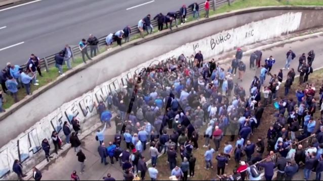 Ο Σέρχιο Μπέρνι, αρμόδιος για θέματα ασφαλείας της περιφέρειας του Μπουένος Άιρες, παρά τα πολλαπλά χτυπήματα που δέχεται και ενώ αιμορραγεί, επιμένει πως θέλει να μιλήσει με τους οδηγούς.