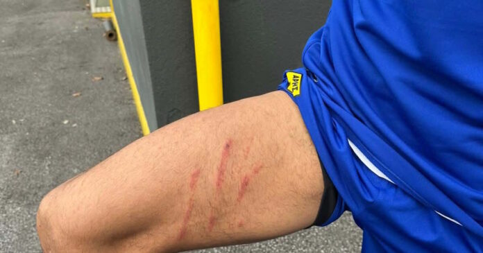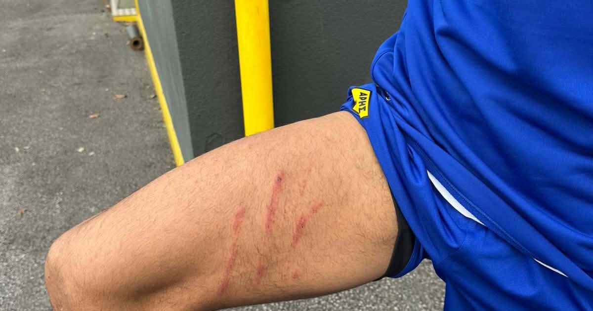 Στη φωτογραφία από τα αποδυτήρια του Άρη, τα σημάδια που άφησε το μαρκάρισμα του παίκτη του ΠΑΟΚ στον μηρό του Ρόουζ, είναι ξεκάθαρα!