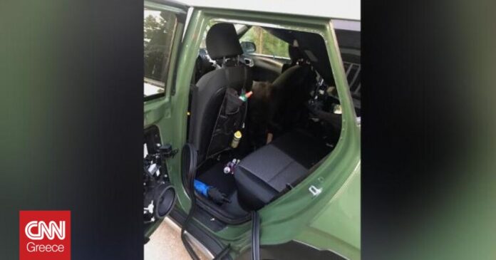 Σύμφωνα με τις Αρχές, η αρκούδα είχε καταφέρει να ανοίξει την πόρτα του αυτοκινήτου με τα δόντια της και παγιδεύτηκε εκεί όταν η πόρτα έκλεισε πίσω της.