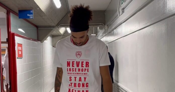 Πιο συγκεκριμένα, οι παίκτες του Ολυμπιακού εμφανίστηκαν στο γήπεδο με μπλουζάκια που έγραφαν “Ποτέ μη χάσεις την ελπίδα. Υπάρχει πάντα τρόπος. Μείνει δυνατός Κίναν! Ας το κάνουμε για τον Έβανς”.