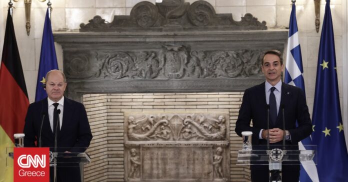 Σύμφωνα με δημοσίευμα της Deutsche Welle, πολλά είναι τα ρεπορτάζ και οι πρώτες αποτυπώσεις της σύντομης επίσκεψης του Γερμανού καγκελάριου Όλαφ Σολτς στην Αθήνα και της μάλλον αναμενόμενης ως προς το περιεχόμενο συνέντευξης Τύπου με τον Κυριάκο Μητσοτάκη.