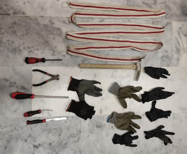 Κατά την έρευνα του οχήματος, το οποίο κατασχέθηκε, βρέθηκαν και κατασχέθηκαν επιπλέον διαρρηκτικά εργαλεία (ιμάντας αναρρίχησης, σκεπάρνι, κατσαβίδια, μαχαίρι, τανάλια, γάντια) καθώς και τρεις αλυσίδες λαιμού.