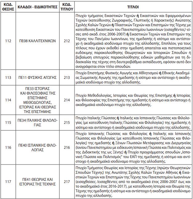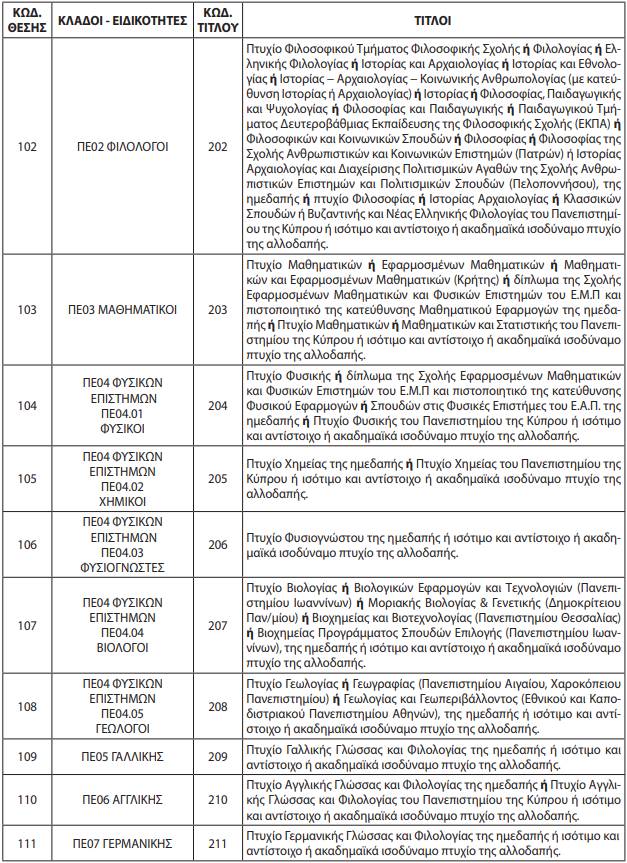 Συγκεκριμένα, σύμφωνα με το ΦΕΚ που δημοσιεύτηκε για τις προσλήψεις εκπαιδευτικών, το ΑΣΕΠ καλεί τους εκπαιδευτικούς Δευτεροβάθμιας Εκπαίδευσης, κλάδων: