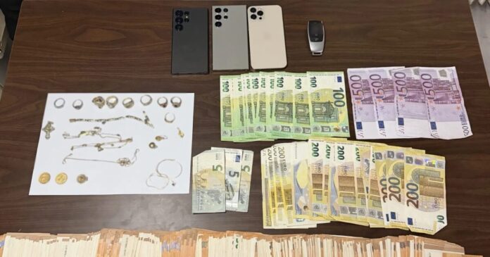 Κατά τον έλεγχο του οχήματος και των επιβαινόντων, βρέθηκε συνολικά στην κατοχή τους και κατασχέθηκε το χρηματικό ποσό των 38.115 ευρώ καθώς και πλήθος κοσμημάτων, την κατοχή των οποίων δεν μπορούσαν να δικαιολογήσουν και τους οδήγησαν στο Τμήμα Δίωξης και Εξιχνίασης Εγκλημάτων Αγίου Παντελεήμονα για περαιτέρω προανάκριση.