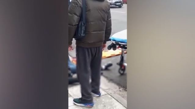 Στις αποκλειστικές εικόνες που εξασφάλισε το MEGA, φαίνεται ο οδηγός της μηχανής μετά το ατύχημα, κάτω στο οδόστρωμα, να λαμβάνει τις πρώτες βοήθειες από πολίτες που έσπευσαν στο σημείο.