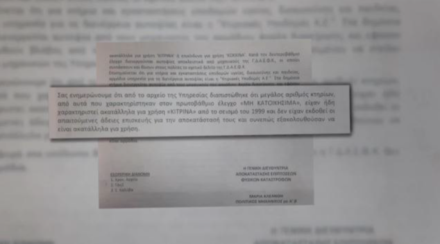 Το υπουργείο Υποδομών διαπίστωνε με επίσημο έγγραφο τον Σεπτέμβριο του 2019 ότι πολλά μη κατοικήσιμα, δημόσια κτίρια, ανάμεσά τους και σχολεία είχαν χαρακτηριστεί κίτρινα μετά τον σεισμό του 99 και δεν είχαν εκδοθεί άδειες επισκευής για την αποκατάσταση τους.