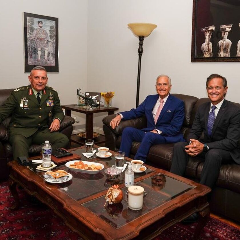 O στρατηγός Κων. Φλώρος με την ηγεσία toy American Hellenic Institute Πηγή: (Twitter @ChiefHNDGS)