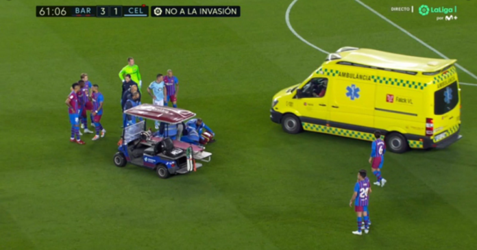 Ο Ρόναλντ Αραούχο έπεσε φανερά ζαλισμένος στο χορτάρι του Καμπ Νου μετά από μία σχετικά ήπια εναέρια σύγκρουσή του με τον Γκάβι, ενώ η ταχύτητα με την οποία έσπευσε το ασθενοφόρο στον αγωνιστικό χώρο έκανε το κοινό στη Βαρκελώνη να κρατήσει την ανάσα του σχετικά με την κατάσταση του Ουρουγουανού αμυντικού της Μπαρτσελόνα.