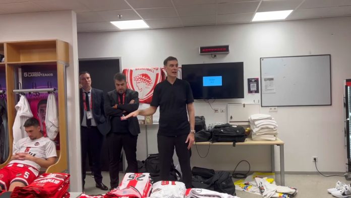 Η ερυθρόλευκη” ΚΑΕ δημοσίευσε την ομιλία του Γιώργου Μπαρτζώκα μέσα από τα αποδυτήρια μετά από τον αποκλεισμό από τη Ρεάλ Μαδρίτης στον ημιτελικό του Final Four της EuroLeague.