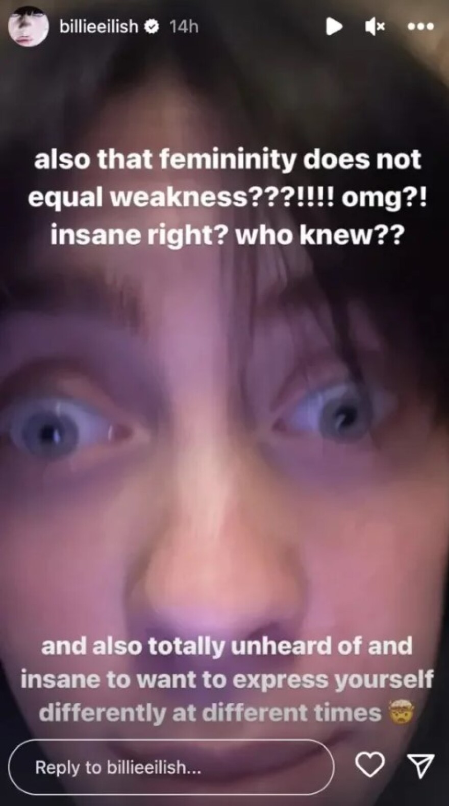 Και σε ένα ακόμα story έγραψε ειρωνικά: «Και επίσης είναι εντελώς ανήκουστο και τρελό να θέλεις να εκφράζεσαι διαφορετικά σε διαφορετικές στιγμές».
