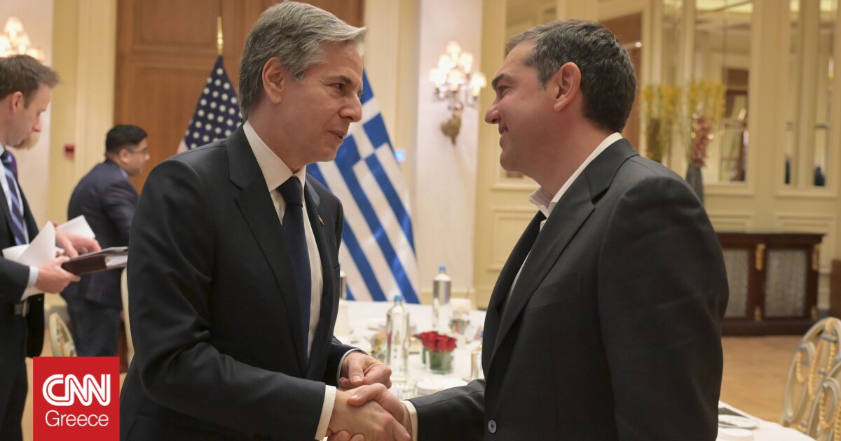Σε καλό κλίμα, όπως πληροφορείται το CNN Greece, διεξήχθη η μισάωρη περίπου συνάντηση του Αλέξη Τσίπρα με τον Άντονι Μπλίνκεν το μεσημέρι της Τρίτης (21/2) σε αίθουσα στο ισόγειο του ξενοδοχείου της «Μεγάλης Βρεταννίας».