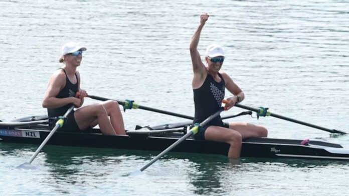 Οι δύο αθλήτριες από τη Νέα Ζηλανδία κατέκτησαν την πρώτη θέση στο διπλό σκιφ γυναικών στην κωπηλασία, στους Ολυμπιακούς Αγώνες του Παρισιού, τερματίζοντας σε 6:50.45 στο Vaires-sur-Marnes Nautical Stadium.