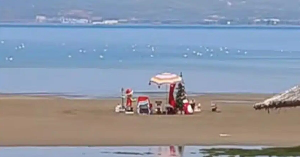 Αν και απομένουν σχεδόν τέσσερις μήνες μέχρι τα Χριστούγεννα, λουόμενος στην Εύβοια αποφάσισε να βγάλει τη στολή του Αϊ Βασίλη από την ντουλάπα προκειμένου να την… αερίσει!