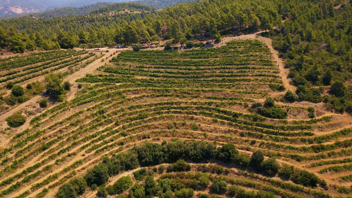 Είναι άνοιξη, νωρίς το πρωί, την ώρα που μια ομάδα ανθρώπων ξεχύνεται στις πλαγιές του Μελίτωνα, ανάμεσα στις μακριές σειρές των αμπελιών, που φτάνουν μέχρι όπου «πιάνει» το μάτι, από το επίπεδο της θάλασσας έως υψόμετρο 350 μέτρων. Τα αμπέλια -και μαζί τους οι άνθρωποι- «ανηφορίζουν» το βουνό ανάμεσα σε έναν εντυπωσιακό πευκώνα, έναν τεράστιο ελαιώνα και τα αγριολούλουδα της πλούσιας τοπικής χλωρίδας. Μέσα σε αυτή την ιδιαίτερη έκταση των 4.500 στρεμμάτων, στον μεγαλύτερο βιολογικό αμπελώνα της Ελλάδας και έναν από τους μεγαλύτερους στην Ευρώπη, βρίσκεται σε εξέλιξη ένα μεγάλο πρότζεκτ αναγέννησης, που εκτός από μεράκι, απαιτεί και σκληρή χειρονακτική εργασία: οι κλίσεις στις πλαγιές του βουνού είναι τέτοιες, που τα τρακτεράκια που «οργώνουν» άλλους μεγάλους αμπελώνες είναι πιο δύσκολο να χρησιμοποιηθούν εδώ, οπότε ο άνθρωπος και τα μικρά αμπελουργικά εργαλεία έχουν τον πρώτο λόγο.