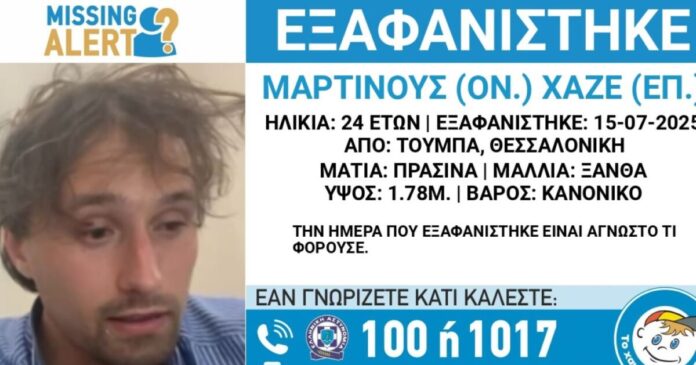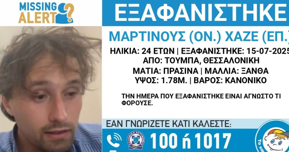Σύμφωνα με το «Χαμόγελο του Παιδιού», ο 24χρονος εξαφανίστηκε την περασμένη Τρίτη (15.07.2025), από την περιοχή της Τούμπας, στην Θεσσαλονίκη.