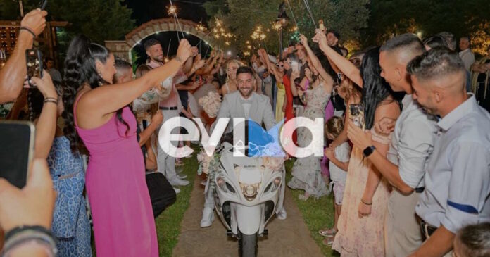 Μία είσοδο διαφορετική από όλες τις άλλες επέλεξε να κάνει ένα νεαρό ζευγάρι στην Εύβοια που, μετά τον γάμο του, κατέφθασε στη δεξίωση με μία μηχανή.