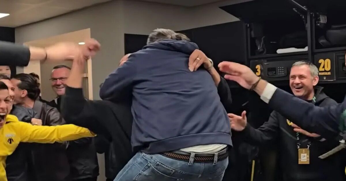 Οι εικόνες από τα αποδυτήρια της ΑΕΚ είναι απίθανες, με τους ποδοσφαιριστές να αποθεώνουν τον Super Mario Ηλιόπουλο, ο οποίος με τη σειρά του έδωσε πριμ 400.000 ευρώ.