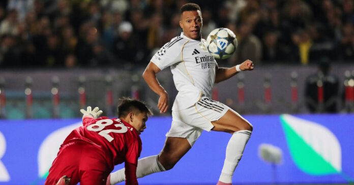 Τελικά, η υπεροχή της Ρεάλ Μαδρίτης έφερε το γκολ στο 25′. ο Μασταντουόνο αντράπηκε από τον αντίπαλο πορτιέρε και ο Κιλιάν Εμπαπέ άνοιξε το σκορ και πέτυχε το 701ο γκολ των “μερένγκες” στο Champions League. Οι “μερένγκες” εγκαταστάθηκαν στα αντίπαλα καρέ, χάνοντας ευκαιρίες για να πετύχουν κι άλλο γκολ.