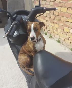 Τώρα που έχει και δεύτερο σκύλο στην κατοχή του, συνδυάζει τις βόλτες και ανεβαίνουν και οι τρεις τους στο μηχανάκι.