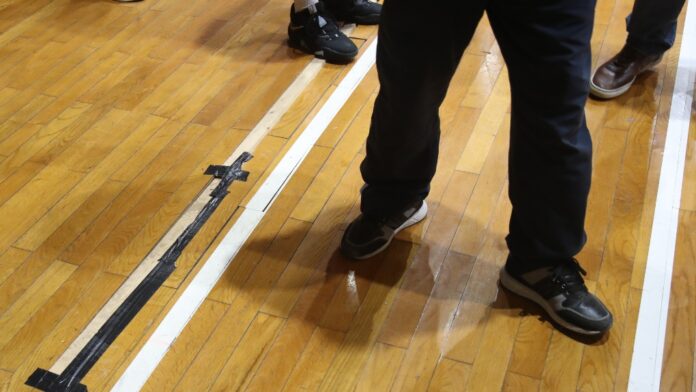 Αφού λοιπόν φθάσαμε στο σχολικό γυμναστήριο και ενημερωθήκαμε για τα παραπάνω κατευθυνθήκαμε στα αποδυτήρια των φιλοξενούμενων και εκεί ήρθε το δεύτερο σοκ. Αποδυτήρια πολύ μικρά για να φιλοξενήσει 20μελή αποστολή χωρίς τα βασικά (χωρίς τη παραμικρή εστία θέρμανσης , χωρίς πάγκους, κρεμάστρες) και το πάτωμα όλο βρεγμένο.