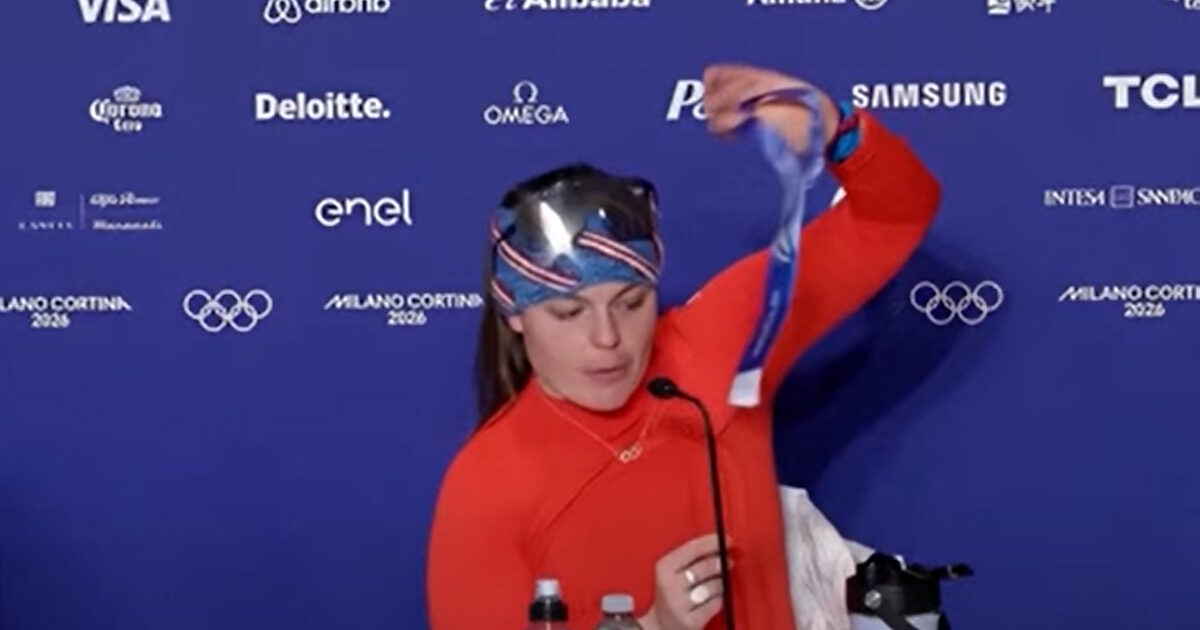 Η Μπρίζι Τζόνσον, συγκεκριμένα, η οποία κέρδισε το το χρυσό στην κατάβαση του αλπικού σκι γυναικών, έδειξε το χαλασμένο μετάλλιό της στη συνέντευξη Τύπου.