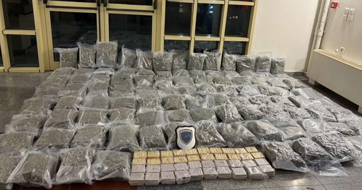 Με τη συνδρομή των ειδικά εκπαιδευμένων σκύλων ανίχνευσης κατασχέθηκαν 100 αεροστεγώς κλειστές συσκευασίες ακατέργαστης υδροπονικής κάνναβης (skunk), συνολικού μικτού βάρους 110,7 κιλών, καθώς και 40 συσκευασίες κατεργασμένης κάνναβης (hashish), βάρους 21,17 κιλών.