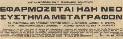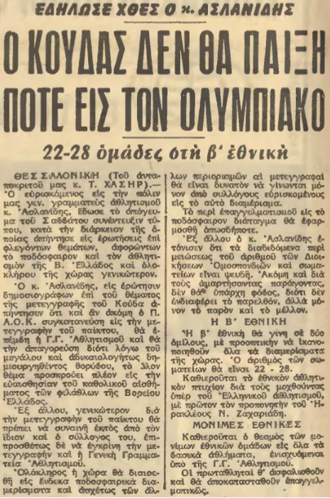 Απαγορεύτηκαν οι μεταγραφές ανάμεσα σε ομάδες διαφορετικών γεωγραφικών διαμερισμάτων, αλλά και μεταξύ ομάδων που είχαν έντονο ανταγωνισμό. Ουσιαστικά η πρώτη μεγάλη μεταγραφή που ακύρωσε το καθεστώς με τη συγκεκριμένη απόφαση, ήταν αυτή του Γιώργου Κούδα από τον ΠΑΟΚ στον Ολυμπιακό. Ο Κούδας που υπηρετούσε τη θητεία του στο λιμενικό στον Πειραιά, είχε συμφωνήσει με τους «ερυθρόλευκους» το καλοκαίρι του 1967, αλλά ο τότε ΓΓΑ ήταν αρνητικός, δηλώνοντας ότι για τον ποδοσφαιριστή οι επιλογές ήταν δύο. Ο ΠΑΟΚ ή το σπίτι του!!!