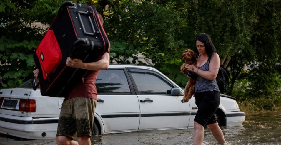 Οι ουκρανικές Αρχές έδωσαν στη δημοσιότητα βίντεο από διασώστες που απομακρύνουν ζώα και ανθρώπους από τις πλημμυρισμένες περιοχές.