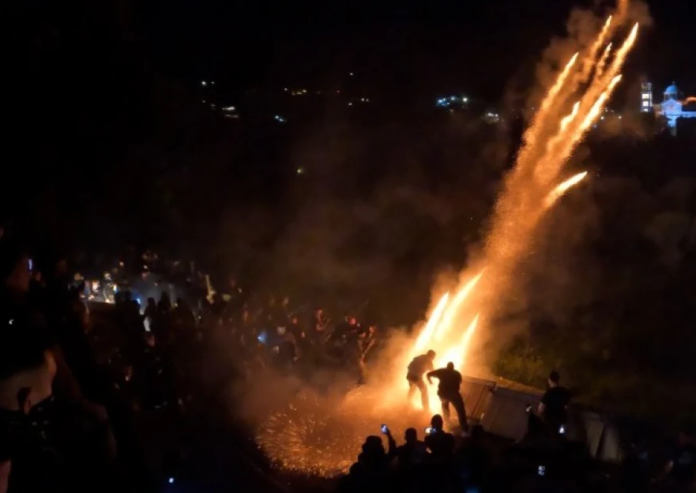 Εντυπωσιακός αλλά με μέτρο και σεβασμό στην ασφάλεια θεατών και πιστών, ήταν ο φετινός ρουκετοπόλεμος ανάμεσα στις ενορίες του Αγίου Μάρκου και της Παναγίας Ερυθιανής στην Χίο.