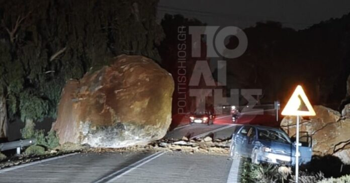 Σύμφωνα με το Politischios, ο τεράστιος βράχος φαίνεται να αποκολλήθηκε ξαφνικά από την απότομη πλαγιά του βουνού και να κατέληξε στο οδόστρωμα, κάνοντας αδύνατη τη διέλευση των οχημάτων από το συγκεκριμένο σημείο. Η κυκλοφορία διεκόπη άμεσα, προκειμένου να αποφευχθούν περαιτέρω κίνδυνοι για τους διερχόμενους οδηγούς.