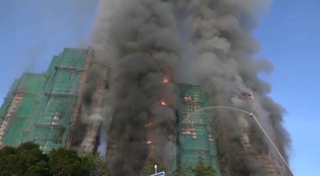 Το έργο των πυροσβεστών είναι δύσκολο, καθώς γύρω από τον φλεγόμενο ουρανοξύστη υπάρχουν κτίρια που καλύπτονται από εξωτερικές σκαλωσιές από μπαμπού.