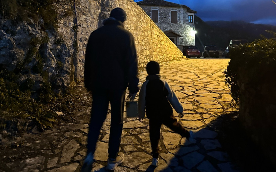Αν υπολογίσει κανείς και την ομίχλη που πέφτει συνήθως τις βραδινές ω΄ρες και μεταμορφώνει την περιοχή σε σκηνικό ταινίας. Αυτό σκεφτήκαμε όταν είδαμε το βίντεο που έβαλε η Γεωργία Αβασκαντήρα με τον γιο τους να κατηφορίζει ένα έρημο, γιορτινά στολισμένο στενό…