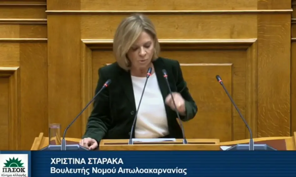 Στην Ολομέλεια της Βουλής, κατά τη συζήτηση του νέου φορολογικού νομοσχεδίου, η Βουλευτής Αιτωλοακαρνανίας του ΠΑΣΟΚ – Κινήματος Αλλαγής, Χριστίνα Σταρακά, άσκησε σκληρή κριτική στην κυβέρνηση, κάνοντας λόγο για ανισορροπία, κοινωνική αδικία, εγκατάλειψη της περιφέρειας και πολιτικές που θέτουν υπό εξαφάνιση τη μεσαία τάξη.