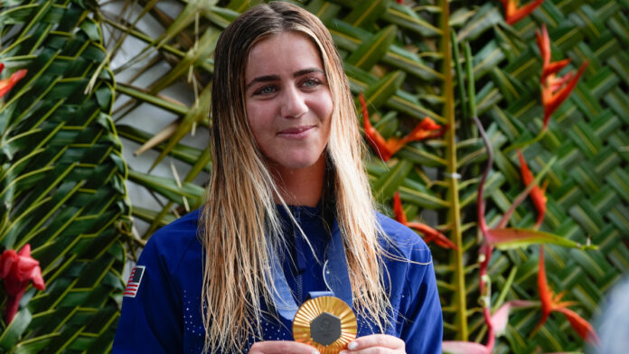 Η Αμερικανίδα πρωταθλήτρια συγκέντρωσε 10,50 βαθμούς στον τελικό του Σέρφινγκ γυναικών και ανέβηκε στο πρώτο σκαλί του βάθρου.
