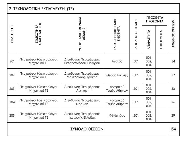 - Eιδικότητα απασχόλησης: Διπλωματούχοι Ηλεκτρολόγοι Μηχανικοί ΠΕ