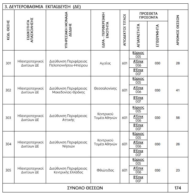 - Eιδικότητα απασχόλησης: Ηλεκτροτεχνικοί Δικτύων ΔΕ