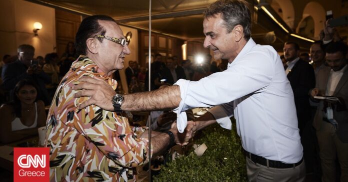 Οι δυο άνδρες χαιρετήθηκαν εγκάρδια και αντάλλαξαν μερικά λόγια, με τον γνωστό τραγουδιστή να ενημερώνει τον πρωθυπουργό και για την συναυλία που θα κάνει.
