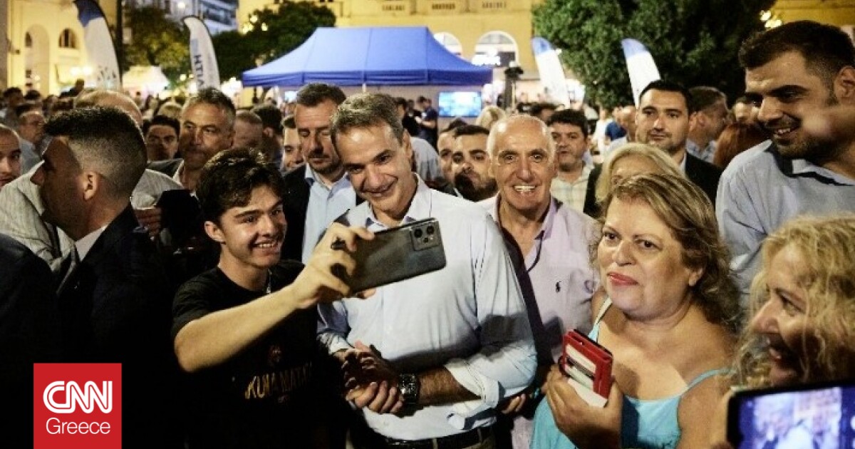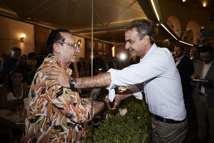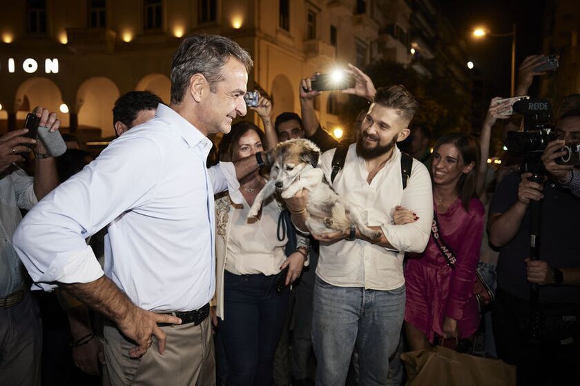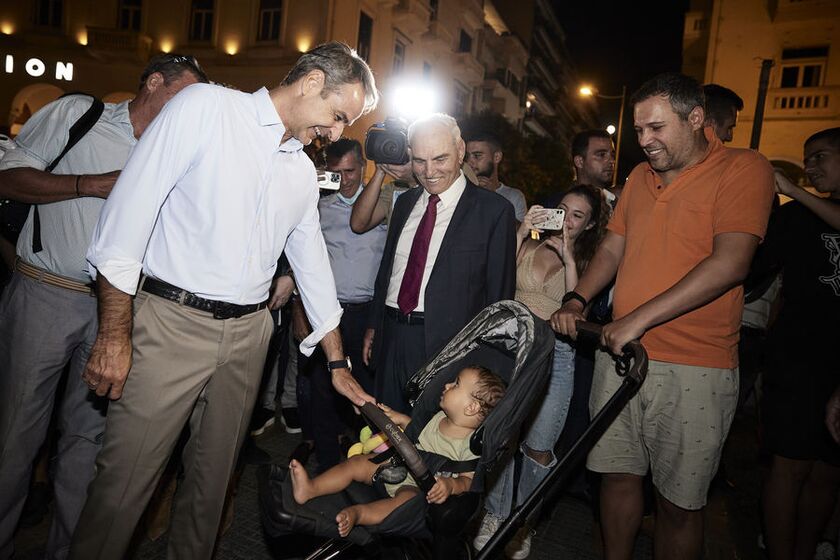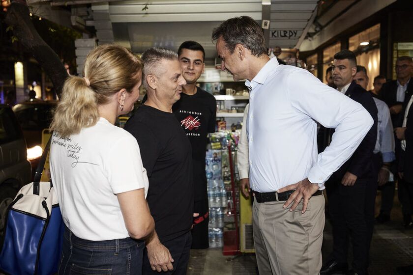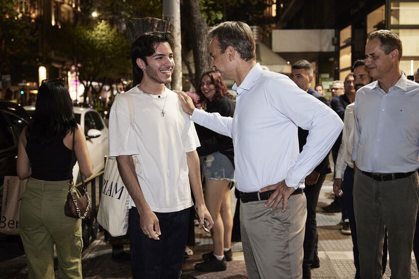 Συνοδευόμενος από τον γραμματέα της Πολιτικής Επιτροπής της Νέας Δημοκρατίας Παύλο Μαρινάκη, ο κ. Μητσοτάκης έφτασε αρχικά στο καφέ Ολύμπιον όπου έκανε χειραψίες με τους παρευρισκόμενους.