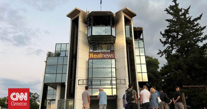 Για «εμφανέστατα» ίχνη εμπρησμού στα γραφεία του κτηρίου στα οποία στεγάζονται τα γραφεία της Real Group στο Μαρούσι μίλησε ο διευθυντής του ραδιοφωνικού σταθμός Real Fm, Γιώργος Χουδαλάκης.