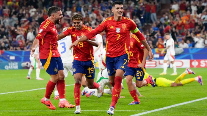 Ισπανία: Σιμόν, Καρβαχάλ, Λε Νορμάντ, Λαπόρτ, Κουκουρέγια, Πέδρι (71′ Μπαένα), Ρόδρι, Φαμπιάν Ρουίθ, Γιαμάλ (71΄ Τόρες), Μοράτα (78΄ Οϊαρθάμπαλ), Γουίλιαμς (78΄ Πέρεθ).