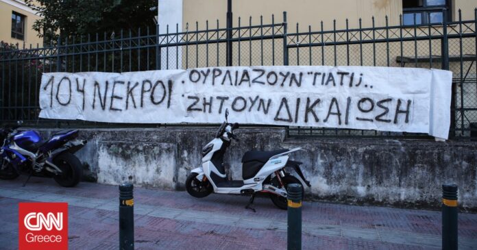Στην κεντρική πύλη των δικαστηρίων είχαν τοποθετήσει μάλιστα ένα πανό που έγραφε «104 νεκροί, ουρλιάζουν γιατί, ζητούν δικαίωση».