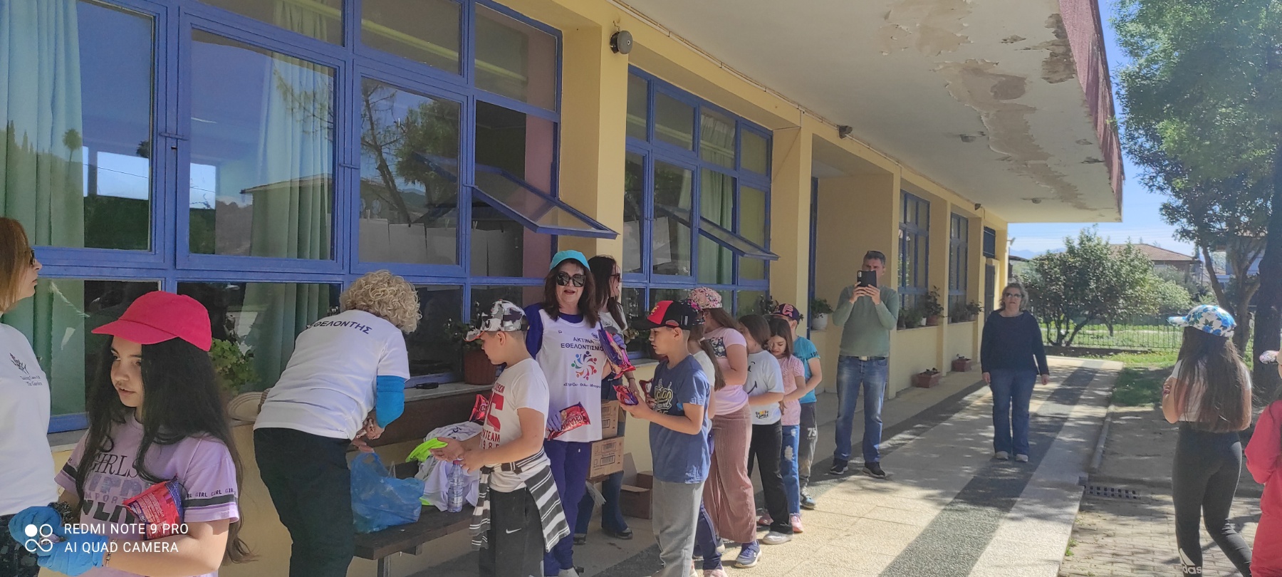 Με πρωτοβουλία της Ακτίνας καθαρίστηκε ο αύλειος χώρος του σχολείου και φυτεύτηκαν νέα λουλούδια. Στους μικρούς μαθητές προσφέρθηκαν καπέλα και παιχνίδια από τους εθελοντές του Δήμου Αγρινίου.