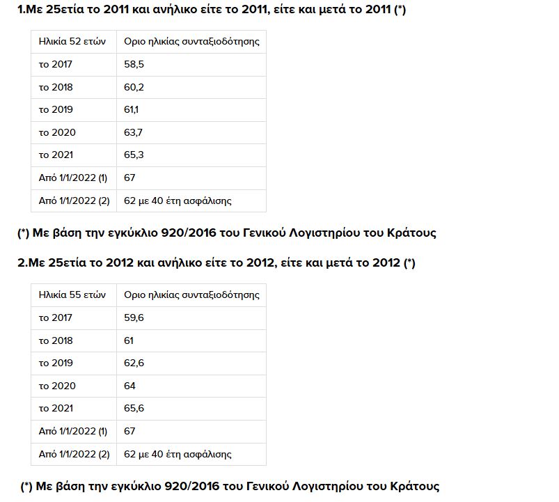 Για παράδειγμα, γονέας που έκλεισε το 52ο έτος τον Ιούνιο του 2018 με 25ετία το 2011 και απόκτηση παιδιού το 2013, θα έβγαινε σε πλήρη σύνταξη φέτος με όριο ηλικίας 60 ετών και 2 μήνες. Μετά την ανατροπή θα βγει είτε στα 67 με πλήρη σύνταξη είτε στα 62 με μειωμένη είτε θα πρέπει να συμπληρώσει 40 έτη ασφάλισης για να πάρει πλήρη σύνταξη στα 62.