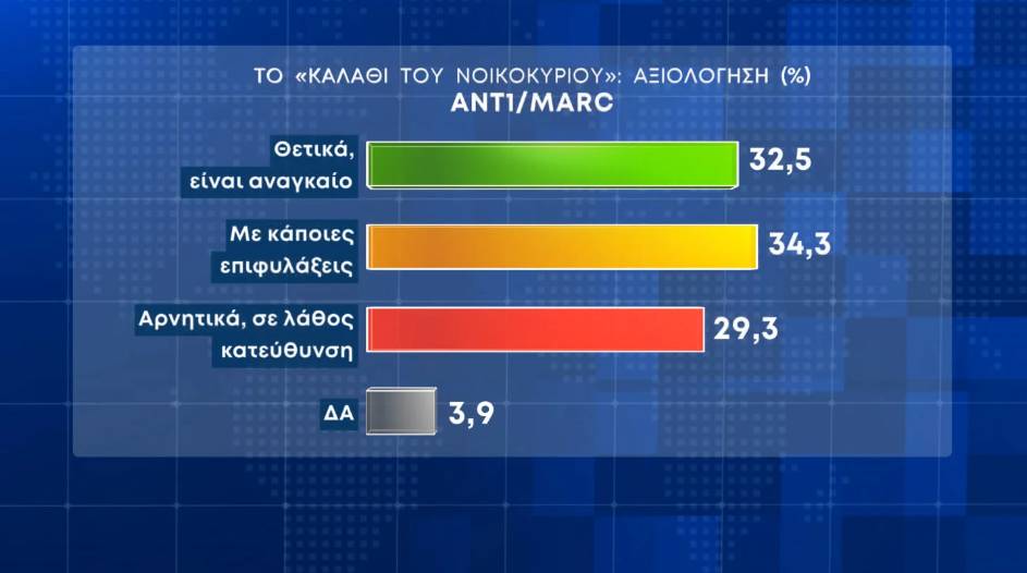Ερωτηθέντες για το «καλάθι του νοικοκυριού», οι συμμετέχοντες στην έρευνα το βλέπουν με κάποιες επιφυλάξεις σε ποσοστό 34,3%, ενώ το 32,5% το κρίνει θετικά, ως «αναγκαίο». Το 29,3% των ερωτηθέντων το αξιολογεί αρνητικά, «σε λάθος κατεύθυνση».