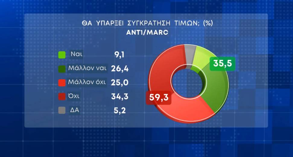 Το 59,3% των ερωτηθέντων εμφανίζεται απαισιόδοξο ως προς το αν θα υπάρξει συγκράτηση των τιμών, ενώ ένα 35,5% εμφανίζεται πιο αισιόδοξο.