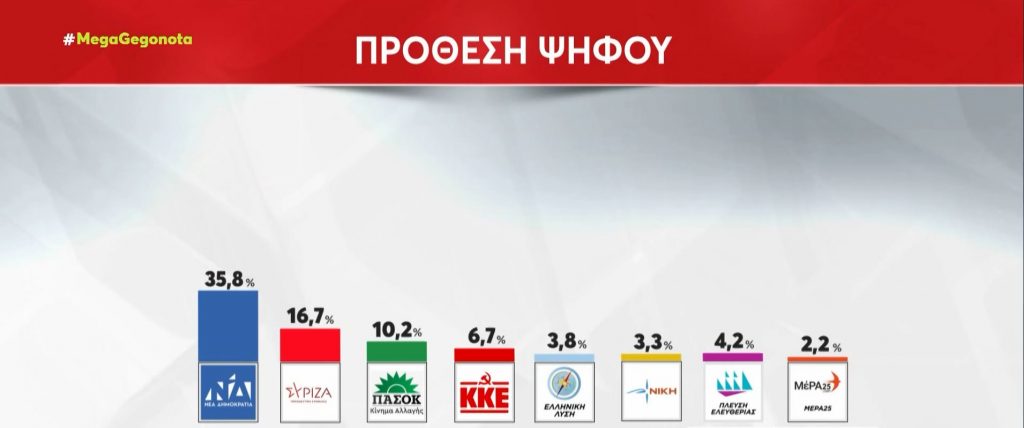 Στη μέτρηση της Metron Analysis για το MEGA στην πρόθεση ψήφου τα κόμματα παίρνουν: