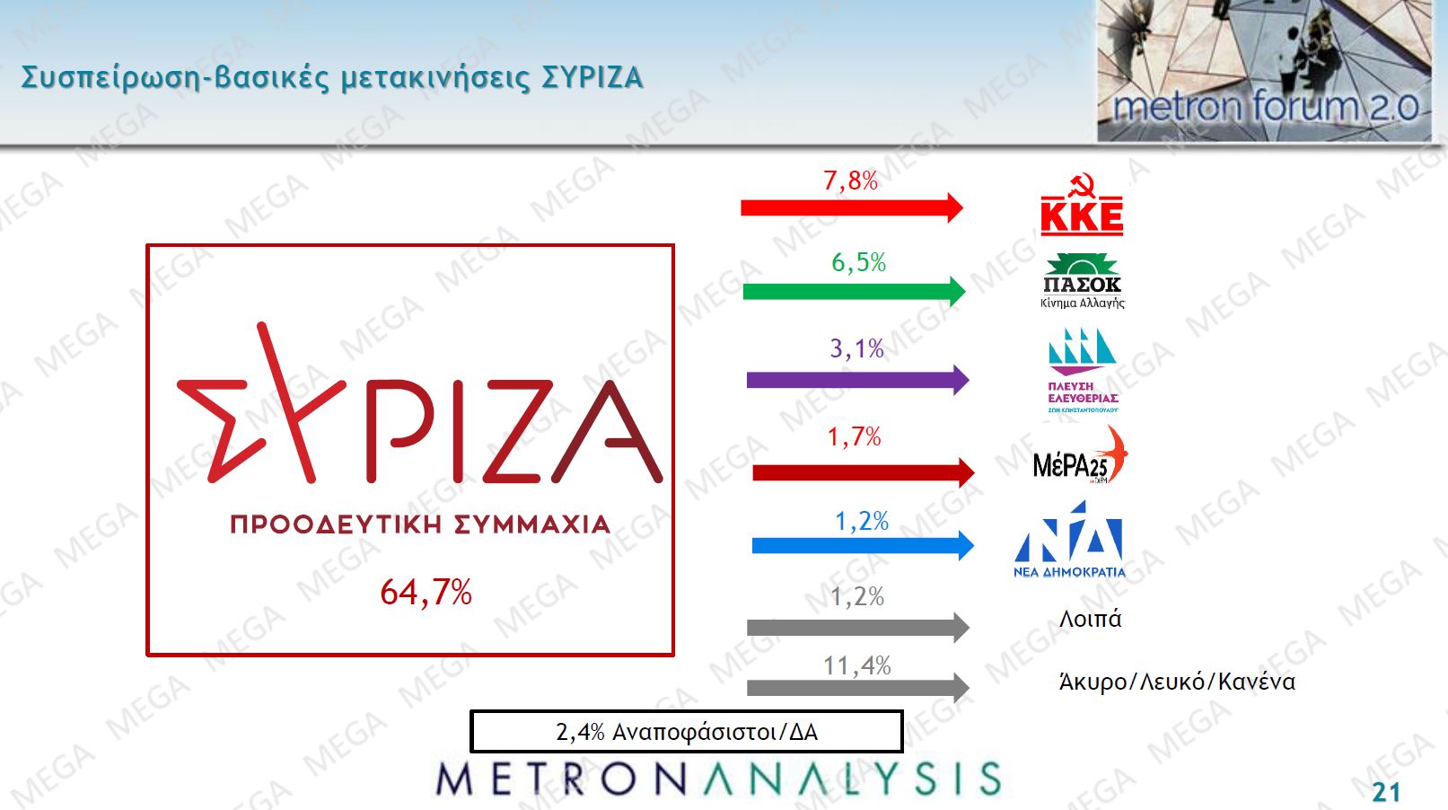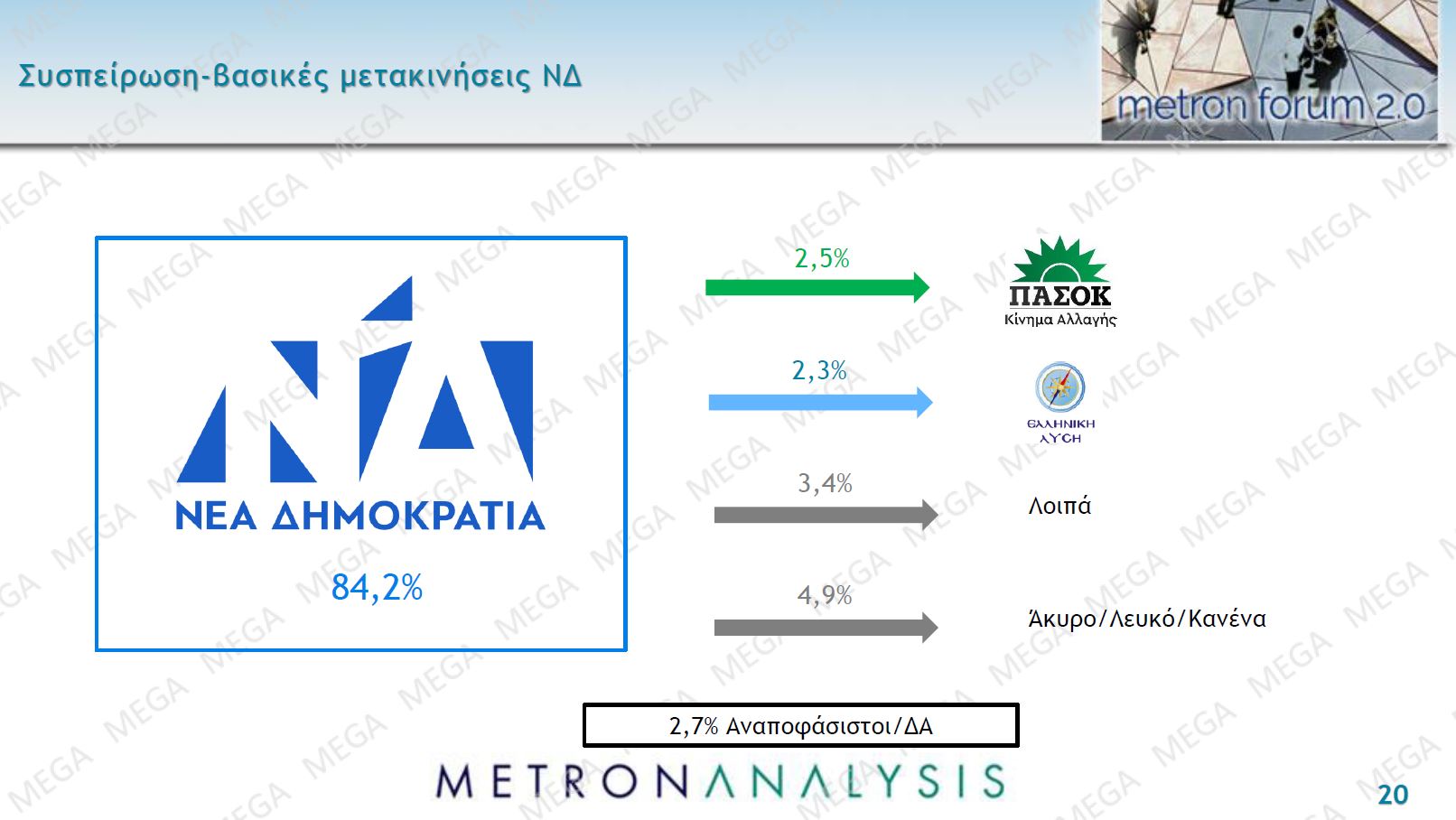 Η ΝΔ έχει μικρές διαρροές προς το ΠΑΣΟΚ και την Ελληνική Λύση, ο ΣΥΡΙΖΑ σημαντικές διαρροές προς ΚΚΕ και ΠΑΣΟΚ και το ΠΑΣΟΚ έχει μικρότερες προς ΣΥΡΙΖΑ και ΚΚΕ.
