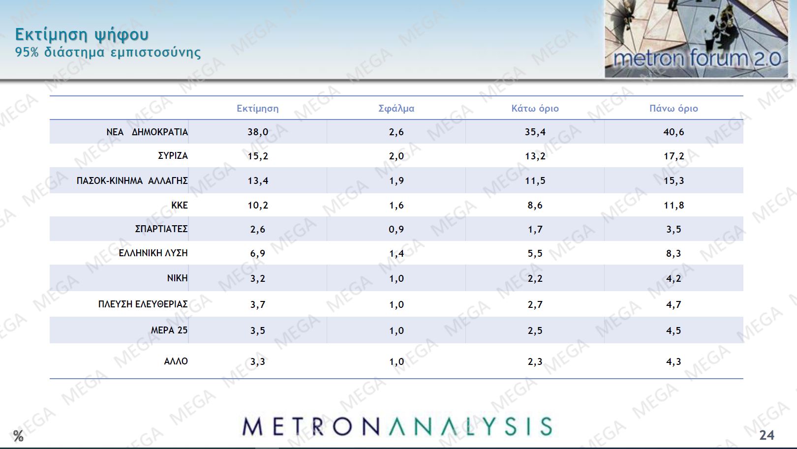 Στη βάση των παραπάνω η Metron Analysis κάνει μια εκτίμηση ψήφου που δείχνει τη ΝΔ στο 38% με μια υποχώρηση 2,6% από τις εθνικές εκλογές, το ΣΥΡΙΖΑ με μια υποχώρηση 2,6% στο 15,2%, το ΠΑΣΟΚ με μια άνοδο 1,6% στο 13,4% και το ΚΚΕ με μια άνοδο 2,5% στο 10.2%.