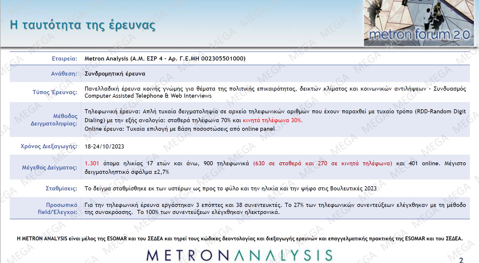 Μια ακτινογραφία της «κατάστασης πνευμάτων» στην ελληνική κοινωνία προσφέρει η μεγάλη δημοσκόπηση της Metron Analysis για το MEGA.